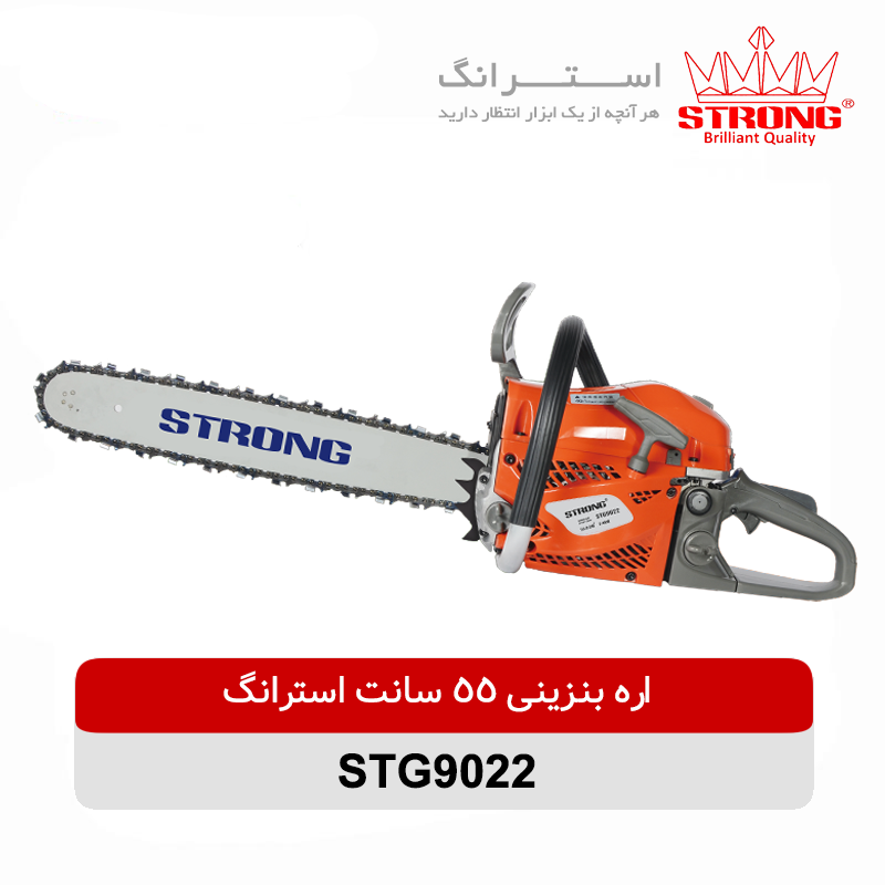 اره بنزینی 55 سانتی متر استرانگ مدل STG9022 دارای قدرتی معادل 2400 وات و حجم موتوری برابر 54.5 سی سی میباشد. حجم مخزن این اره بنزینی استرانگ 550 میلی لیتر و میزان اختلاط روغن و بنزین این دستگاه 40 به یک میباشد. کاربراتور حرفه ای دیافراگمی با سوپاپ های دوار و سیستم ضد لرزش از ویژگی های اره بنزینی 55 سانتی متر استرانگ مدل STG9022 است. موتور این اره از نوع تک پیستون هوا خنک میباشد و سرعت چرخش در حالت آزاد این اره برابر 3700 دور در دقیقه میباشد.