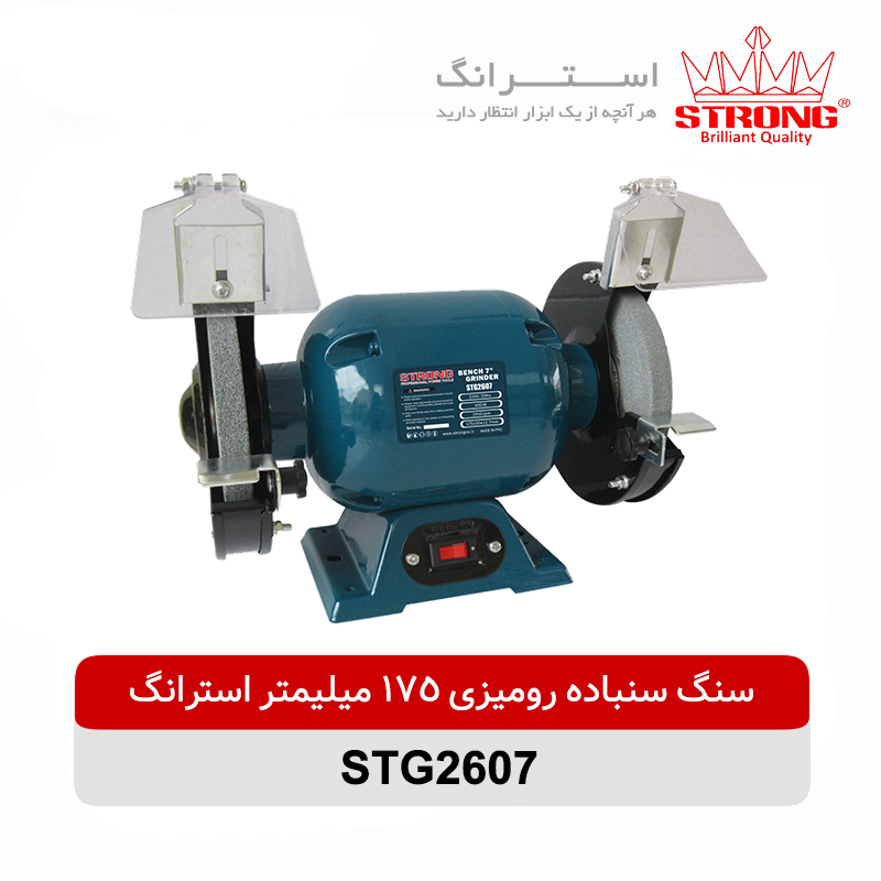 سنگ سنباده رومیزی 175 میلیمتر استرانگ مدل STG2607 با برق 220 ولت و فرکانس کاری 50 هرتز کار میکند. این سنگ رومیزی توانی برابر 600 وات دارد، سرعت گردش آزاد این سنگ رومیزی 2950 دور بر دقیقه بوده و باکمک آن می توان به شکل همزمان از دو سمت دستگاه استفاده کرد. قطر صفحه ی این محصول 175 میلیمتر است. سنگ های رومیزی بسته به کاربردشان در اندازه های مختلفی تولید می شوند و دارای ویژگی های خاصی می باشند.