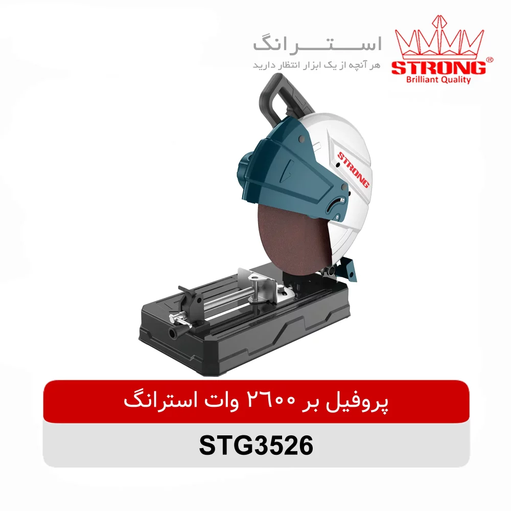 پروفیل بر استرانگ مدل STG3526 با موتور قدرتمند 2600 وات و طراحی صنعتی، انتخابی حرفه ای برای کارگاه ها و پروژه های سنگین فلزی است. این دستگاه با سرعت چرخش 4200 دور در دقیقه و صفحه برش 355 میلی متری، توانایی انجام برش های سریع، دقیق و یکنواخت روی انواع پروفیل، قوطی، نبشی و قطعات فلزی دیگر را دارد.