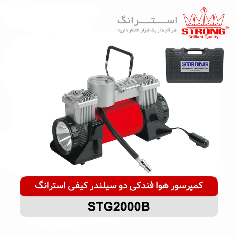 کمپرسور فندکی دو سیلندر کیفی استرانگ مدل STG2000B یکی از وسایل و ابزار های پرکاربرد جهت تعمیرات سرپایی ماشین می باشد. این کمپرسور فندکی استرانگ دارای دو سیلندر پر قدرت، شیلنگ فنری و چراغ قوه LED نیز میباشد. کمپرسور فندکی از موتور الکتریکی کوچکی کمک می گیرد، و به وسیله این موتور الکتریکی کوچک می تواند هوا را در داخل سیلندر فشرده سازی کند. پمپ باد فندکی برای کار کردن خود را به درگاه فندکی متصل می کند و این عمل باعث کار کردن آن می شود. شما به را حتی می توانید از این دستگاه برای دوچرخه، چرخ ماشین و لوازم دیگر مورد استفاده در سفر مانند تشک های بادی و قایق ها به کار بگیرید.